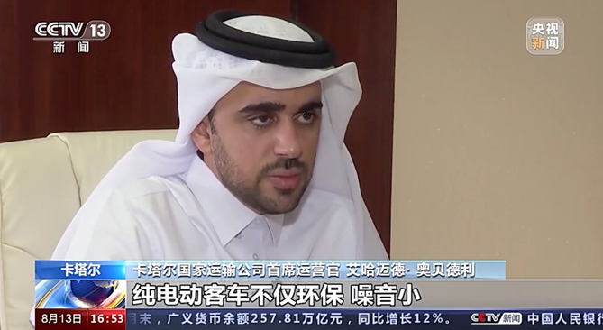 这份用心,让宇通客车赢得了客户的青睐和信任。“我们的目标是将我们的全部车队,包括客车和轻型车辆全部替换成节能环保型车辆。在过去几个月,我们已经把一部分公交大巴替换成了纯电动客车,相比燃油大巴,纯电动客车不仅环保,噪音也小得多,而且保养维修方便,长期的经济效益也非常划算。”卡塔尔国家运输公司首席运营官艾哈迈德· 奥贝德利(Ahmed Al Obaidly)在接受CCTV采访时说。