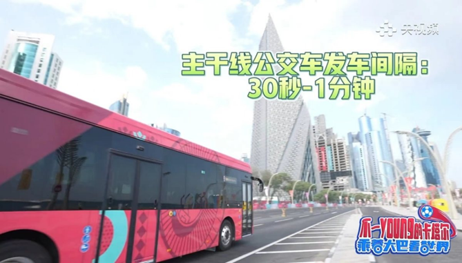 根据宇通客车卡塔尔客户经理范宇坤为央视频记者介绍,除了城市公交以外,宇通定位于大电量、纯电动城市间运输的客运车,配备有车底行李舱,此时正作为高端旅游车,负责卫星城到主城区、机场到酒店和场馆的高端接待和城际交通。