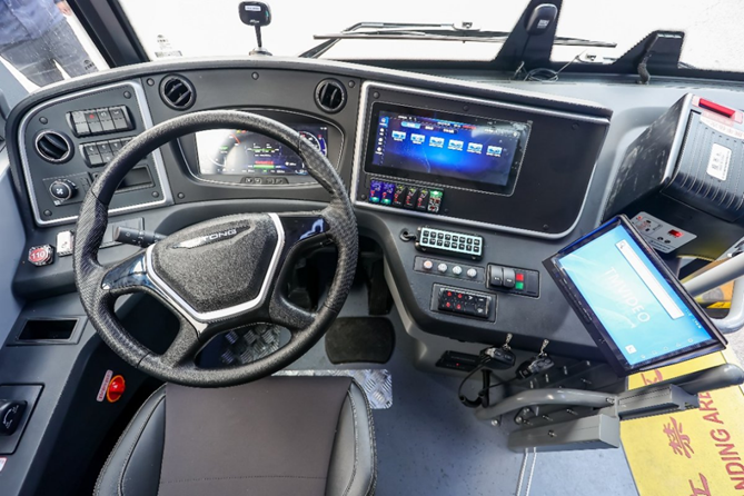 在驾驶舒适性方面,采用一体化包围设计驾驶室,全气囊三点式安全带司机椅,具有加热、通风、角度调节等功能,大大提升司机驾驶舒适性。在乘客区舒适性上,前桥独立悬架结构,后桥大跨距C型托架,整车进口德国大陆气囊,可提升乘客乘坐舒适性。