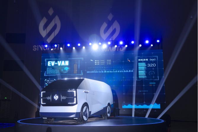 (现场发布新亚科技新能源智能商用车V1)