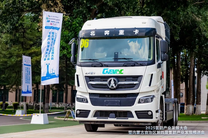 北奔重汽作为内蒙古本土绿氢自循环合作消纳企业,受邀参会并携氢能产品亮相本次大会,作为内蒙古地区氢能重卡领域领军者和先行者,北奔重汽积极推动氢能重卡技术创新,2021年取得氢燃料商用车资质,2024年首批氢能重卡交付实现商业化运营,现已具备300kw以内多场景产品矩阵。