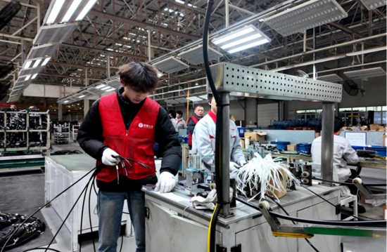 总装车间,许多员工主动加班:生产线停了,个别工位还亮着灯,员工在提前备料,以免影响第二天的生产节奏。
