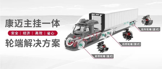 康迈轮端的核心价值,通过“主挂一体化轮端解决方案”在整车匹配上得到了完美体现。当牵引车与挂车均采用技术标准统一的康迈轮端时,可为终端用户带来实实在在的全链路运营效益。