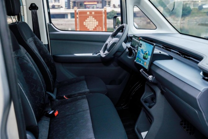 新车配备双侧手动滑门,大幅拓宽货物装卸与人员上下车通道,轻松适配城市街巷狭窄工况与高频装卸需求;电动后视镜加热功能,从容应对雨雪、大雾等恶劣天气,时刻保障全天候运营的视野清晰。车内采用全场景的地铺方案,货运场景可选玻璃钢、铝合金等耐用地铺,客运场景配备仿木纹、航空铝地铺,精准匹配各类运营需求。