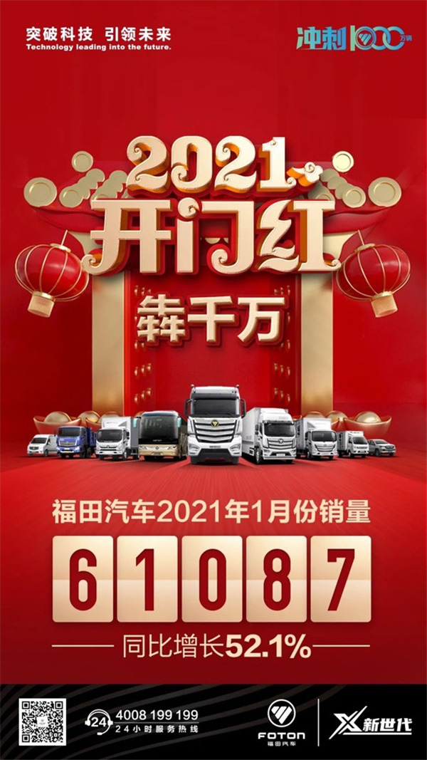 开局即决战。2021年,福田汽车中轻卡市场延续2020年高速向上增长态势,新年伊始捷报连连,创下了多项突破,市场大幅度增长。