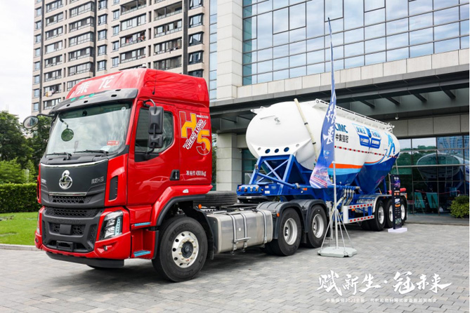 此次东风柳汽参会的五款“头+罐”一体化牵引车,分别为H5超轻版、H7轻奢版、H7智享版、H5V、H5超轻版LNG,集“超轻量化、低能耗、高舒适、高智能、高可靠”五大产品价值,动力覆盖460~520马力,包含柴油与LNG两大动力类型,可根据工况需求挂载各类粉罐,满足不同场景用户运输需求,成为水泥、粉煤灰等散装物料运输的首选装备。