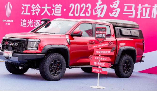 在皮卡领域,江铃大道持续奔跑、挑战、探索,力求在产品力上不断前进,以其日益精细化的实力,满足每个用户对事业和美好生活的向往。为了帮助参赛者创造佳绩,本次南昌马拉松江铃大道派出了以大道敢探者为首的明星车型担任导引、护航等角色,全力为参赛者加油助威、鼓舞呐喊。