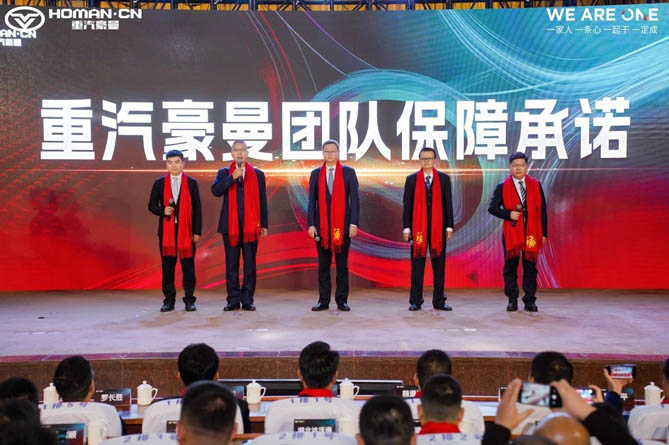 此外,重汽豪曼还提出了2025年的经营目标:整车销售量将突破3万辆大关,营业收入预计30亿元。为实现这一目标,重汽豪曼将与广大合作伙伴携手并进,共同实施互利共赢四项行动计划,包括携手打造让客户更赚钱的豪曼汽车全系列产品、携手构建让伙伴更赚钱的合作模式、携手打造贴心高效的服务及配件保障体系、携手建立市场与工厂端到端的快速联动机制。