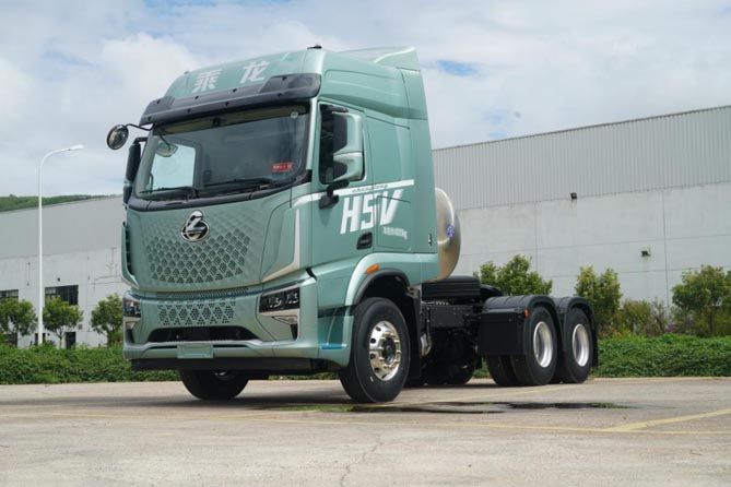 乘龙H5V LNG是乘龙结合众多一线场景与用户深度需求而打造出的国内首款正向开发的更轻、更省、更好的燃气重卡。自重同样可低至7.99吨,不仅轻量化、省气,而且在颜值、智能、舒适等方面都大大提升。