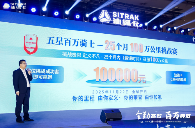 "全勤高效 百万典范——汕德卡25个月100万公里荣耀骑士颁奖典礼"圆满收官,本次典礼不仅见证了25个月100万公里的突破性成就,更传递出汕德卡“全勤高效,每公里皆价值”的品牌追求。中国重汽汕德卡将继续以匠心品质推动中国高端重卡行业向上而行,携手合作伙伴驶向高效物流的崭新未来。