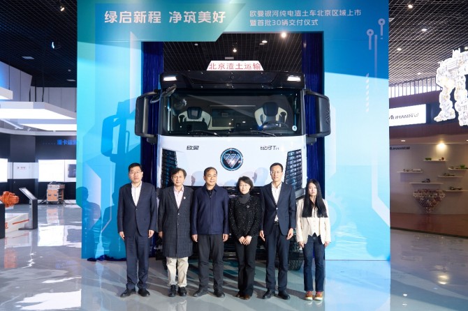 赋能城建守护“北京蓝”,欧曼银河纯电渣土车上市暨首批 30 辆交付